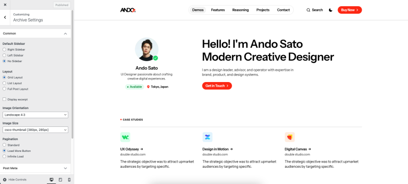 Archive settings are located in Appearance → Customise → Archive Settings.