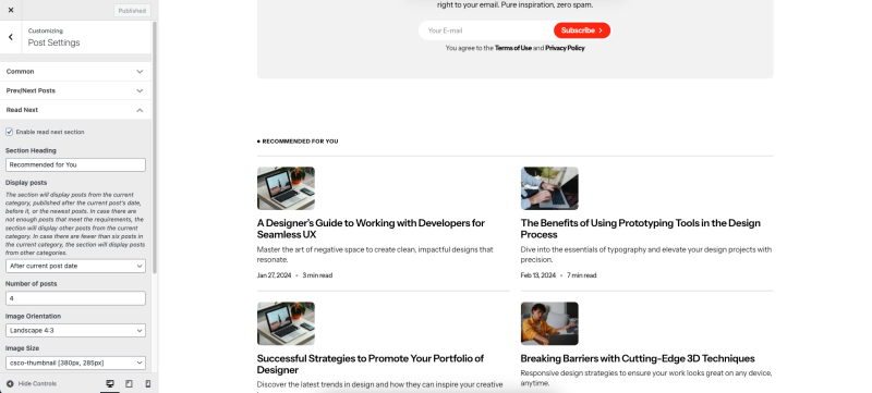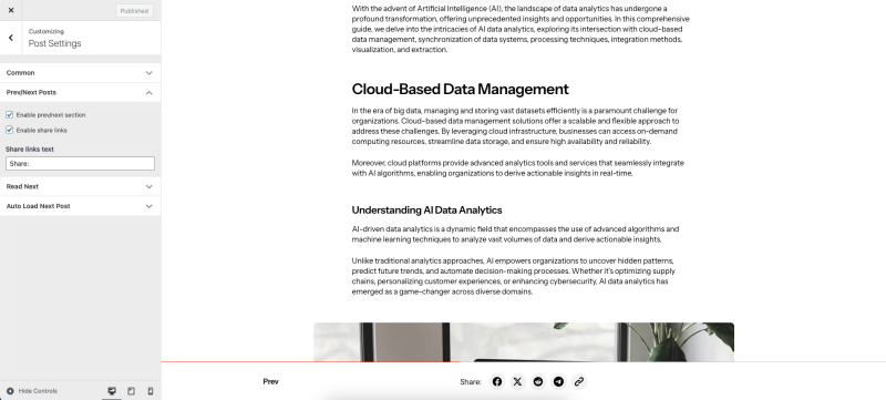 In this same panel, you can display a block with social networks to make it easier to share the post.