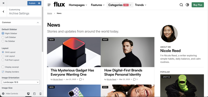 Once activated, the first post in that category is automatically styled for improved visibility and emphasis.