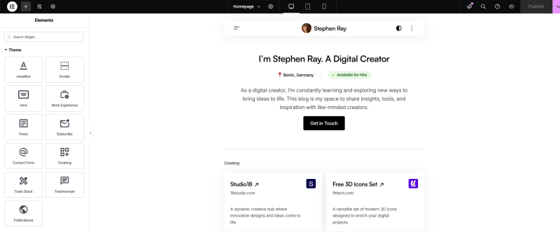 - Design your page: In the Elementor editor, you will see a live preview of your page on the right and a panel with various elements and customization options on the left