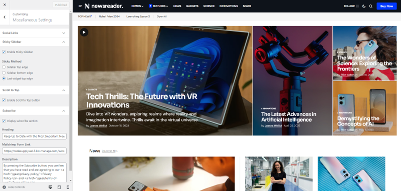 There’re a few miscellaneous settings in Appearance → Customise → Miscellaneous Settings.