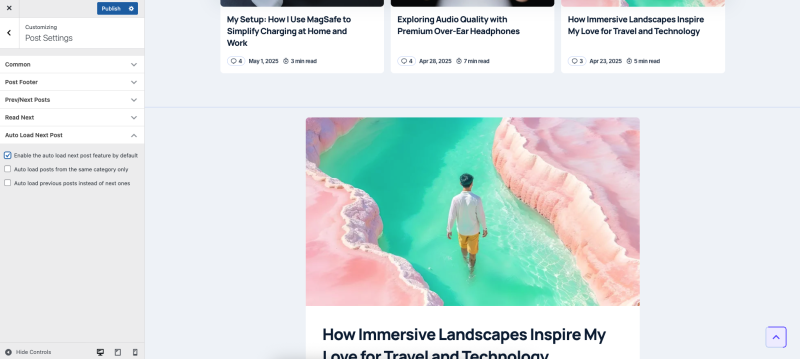 The auto load next post automatically loads the next post when a user reaches the end of the current article without reloading the page. This enhances the user experience by providing seamless content browsing and increases engagement, as users can read more content without needing to click through to new pages.