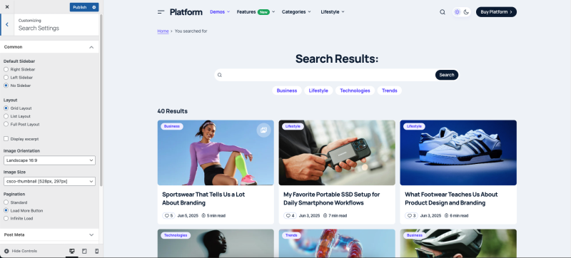You can choose which taxonomy to display – Categories or Tags, and specify the terms shown. This feature helps guide users toward relevant topics and improves content discoverability right from the search page.