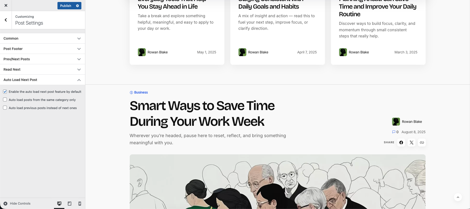 The auto load next post automatically loads the next post when a user reaches the end of the current article without reloading the page. This enhances the user experience by providing seamless content browsing and increases engagement, as users can read more content without needing to click through to new pages.