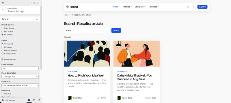 - Switch between preset layout styles: grid, list, horizontal or full post;