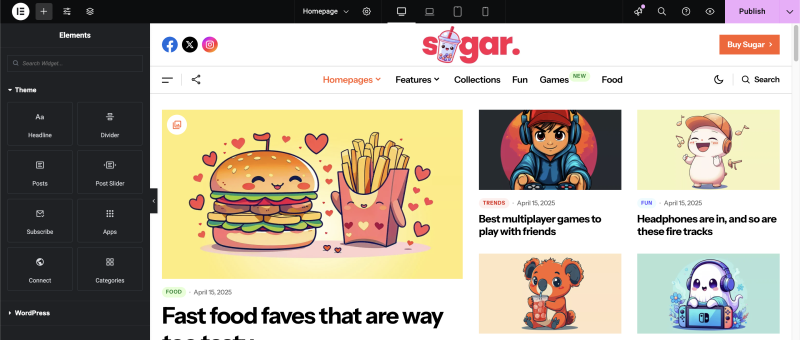 - Design your page: In the Elementor editor, you will see a live preview of your page on the right and a panel with various elements and customization options on the left