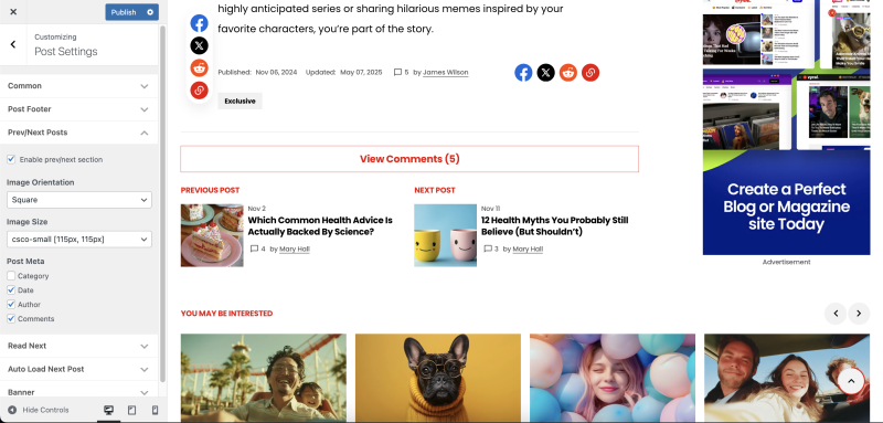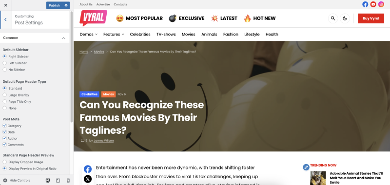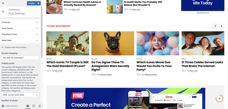 Post settings are located in Appearance → Customise → Post Settings.